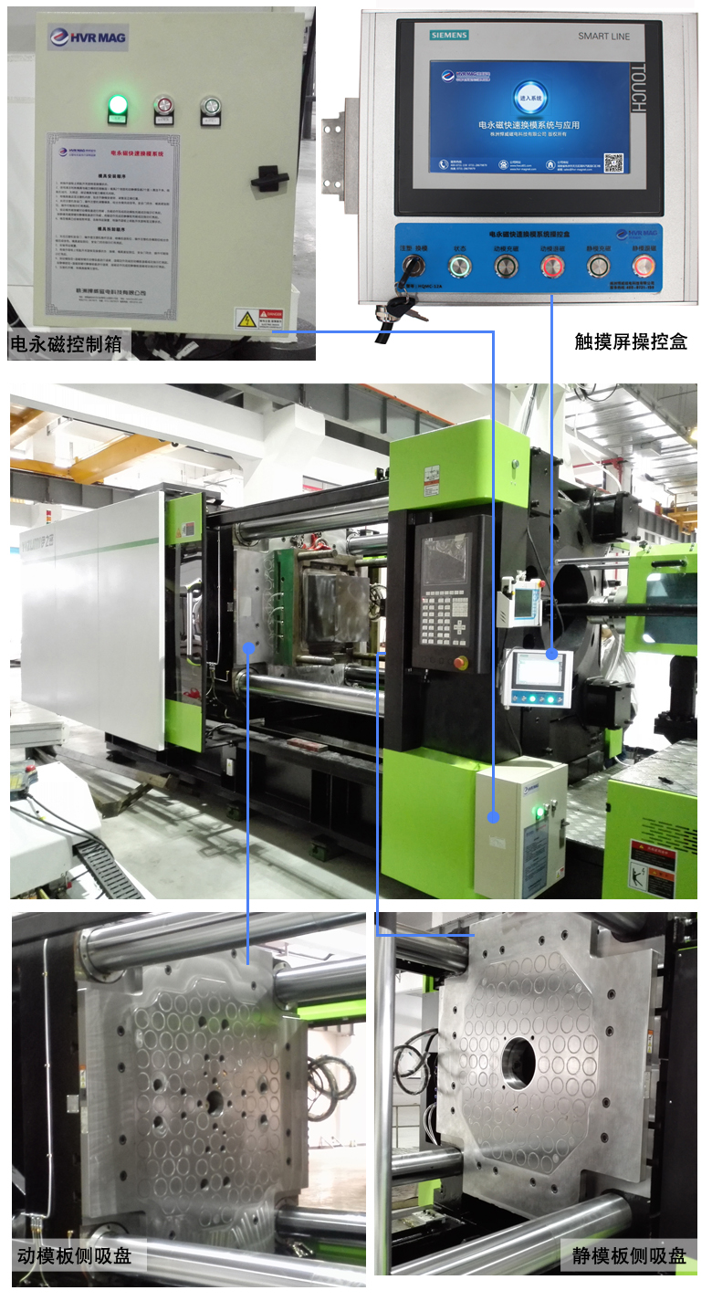 改善后:換模時(shí)間縮短到1-3分鐘,磁力均勻分部于模具,與磁極面全面接觸,更好的保證了合模精度,提高質(zhì)量,減少耗損,模具使用壽命提高50%以上。