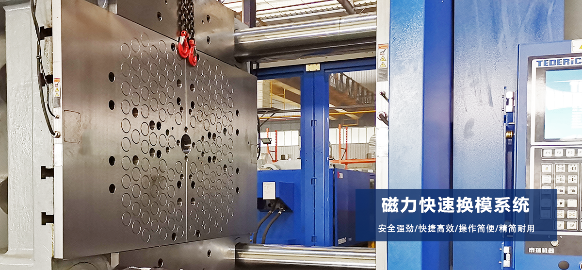 注塑機(jī)的磁力快速換模系統(tǒng)是一種自動(dòng)化,省力且安全的操作方法。在生產(chǎn)過程中,模具被電永磁力快速更換。模具更換程序包括模具準(zhǔn)備,拆卸和存儲(chǔ)。 ,搬運(yùn)等,可以有效地提高生產(chǎn)能力,確保操作安全,并且操作簡(jiǎn)單。通過控制面板上的狀態(tài)顯示功能操作按鈕可以輕松地進(jìn)行模具更換。
